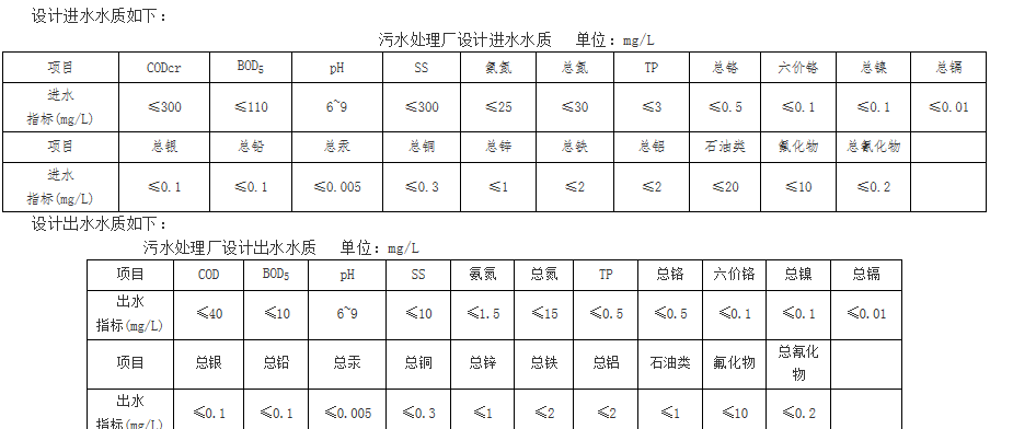 (2)工程施工质量要求:本工程施工质量要求按《建筑工程施工质量验收统一标准》(GB50300-2013)、《城市污水处理厂工程质量验收标准》(GB50334-2002)、《城镇污水处理厂运营质量评价标准》(CJJ/T228-2014)及国家规定现行相关专业的工程质量检验评定标准执行,质量达到合格或以上标准。