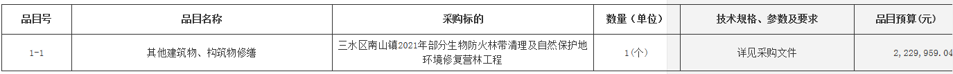 合同包1(三水区南山镇2021年部分生物防火林带清理及自然保护地环境修复营林工程):