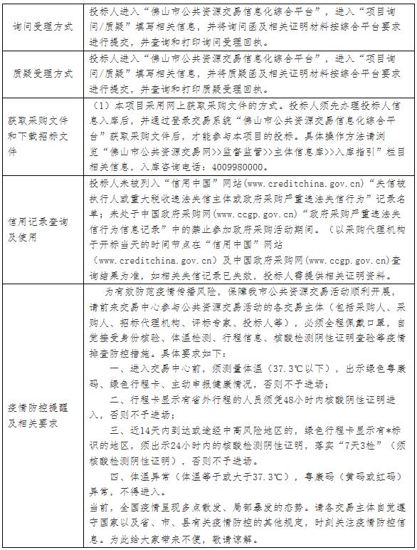 4.7.6根据《佛山市发展和改革局等8部门关于在公共资源交易事项中进行信用信息查询和实施联合奖惩的通知》(佛发改信用〔2019〕1号),对被佛山市公共信用信息管理系统列入失信名单的投标人,不得参加投标。