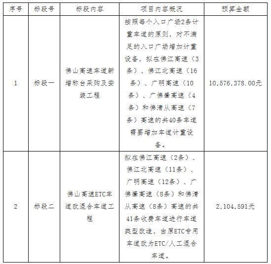 标段一:(佛山高速车道新增称台采购及安装工程)