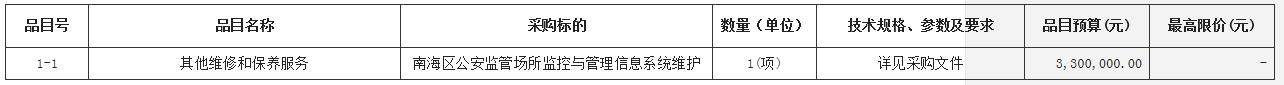 合同包1(南海区公安监管场所监控与管理信息系统维护):