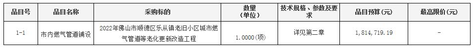 合同包1(2022年佛山市顺德区乐从镇老旧小区城市燃气管道等老化更新改造工程):