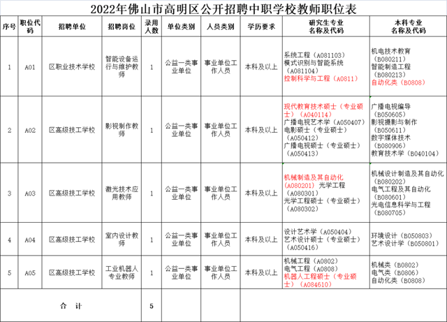 招聘工作由区教育局负责组织实施,报考对象资格条件由佛山市高明区2022年教师招聘工作领导小组办公室负责审核。所有职位实行公开招考,经专业能力测试、面试(授课)等环节并经体检、考察合格后,择优录用。录用后须在高明区教育系统工作满5年以上。