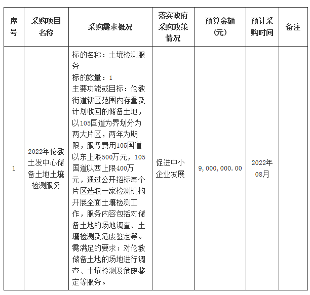 顺德区大良街道土地发展中心2022年07月至2022年08月政府采购意向
