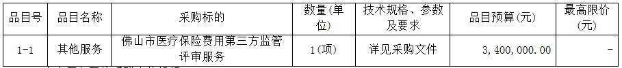 项目名称:佛山市医疗保险费用第三方监管评审服务