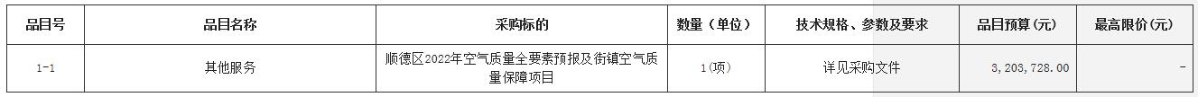 项目名称:顺德区2022年空气质量全要素预报及街镇空气质量保障项目