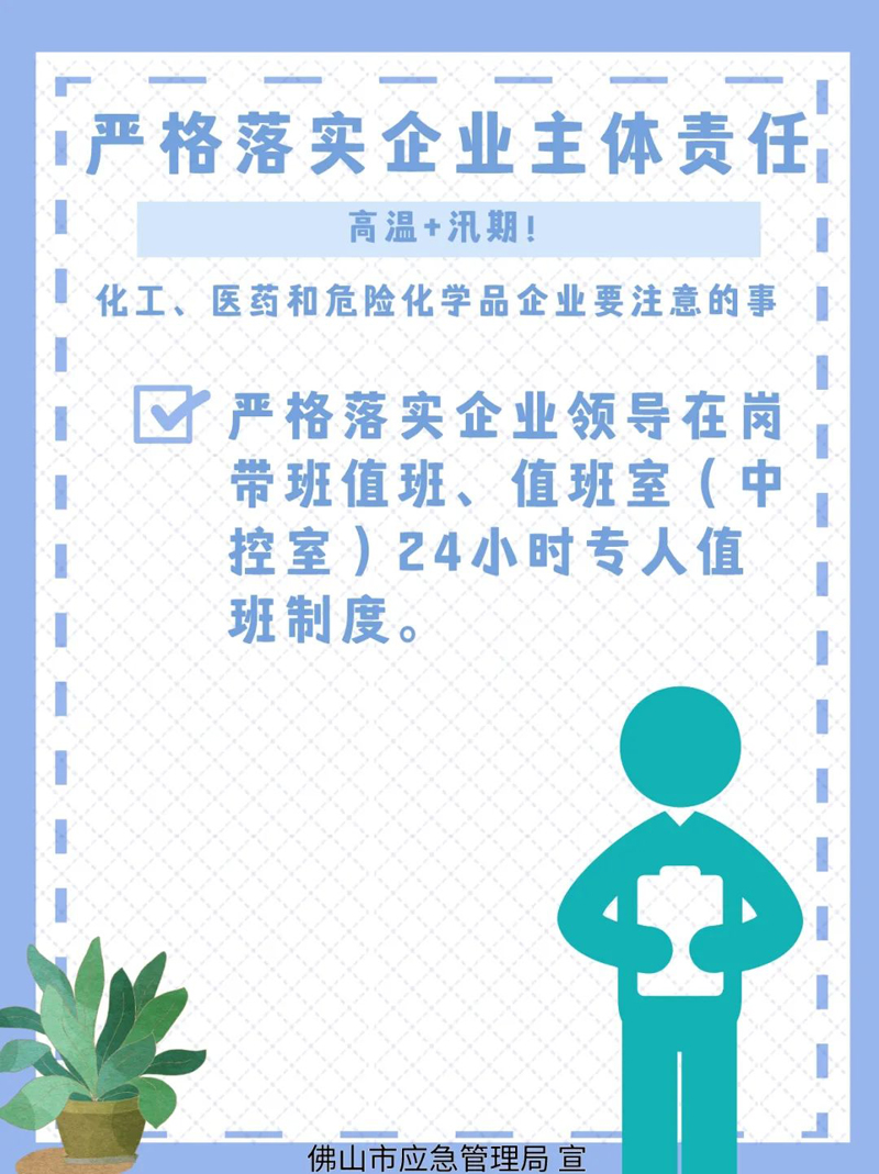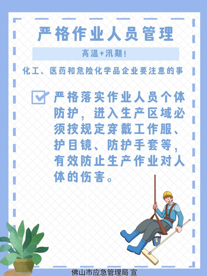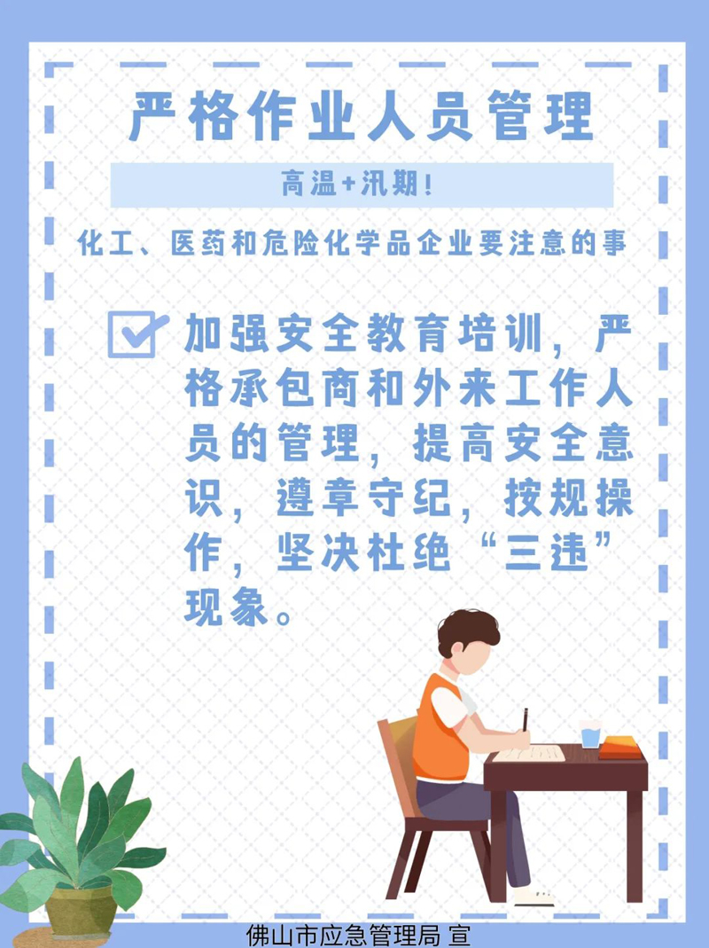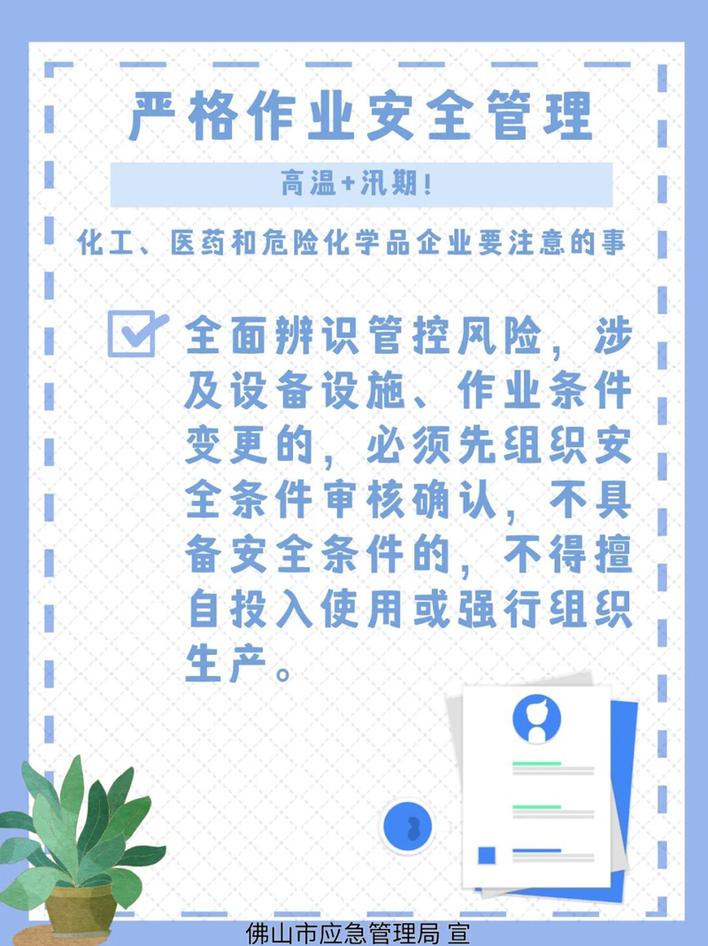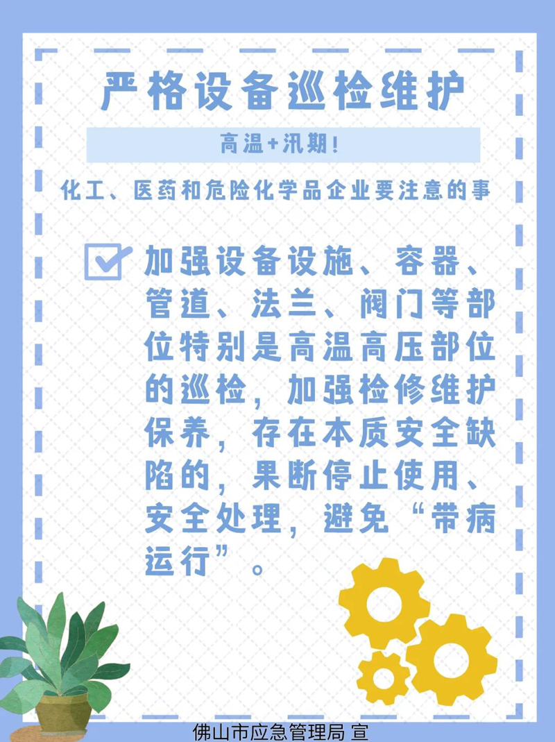 目前,我市已进入晴热高温天气,为切实做好高温天气和汛期雷雨天气条件下化工、医药、危险化学品和烟花爆竹企业安全防范工作,严防引发各类生产安全事故,各企业请参照下列提醒进行自查自纠!