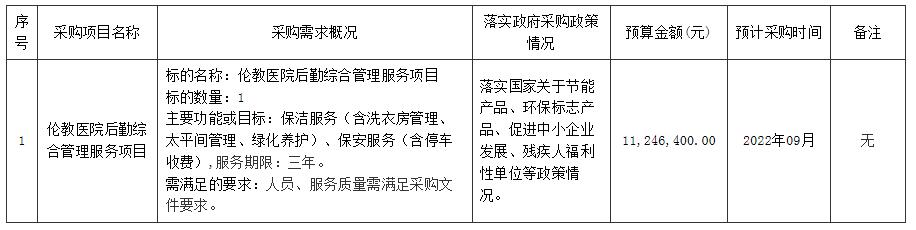 顺德区伦教医院2022年07月至2022年09月政府采购意向