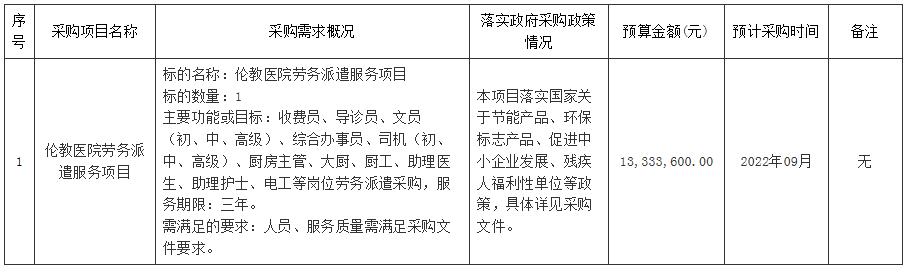 顺德区伦教医院2022年07月至2022年09月政府采购意向