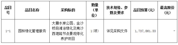 合同包1(大藤水岸公园、金沙桥段滩涂绿化及南沙西堤路节点景观绿化养护项目):