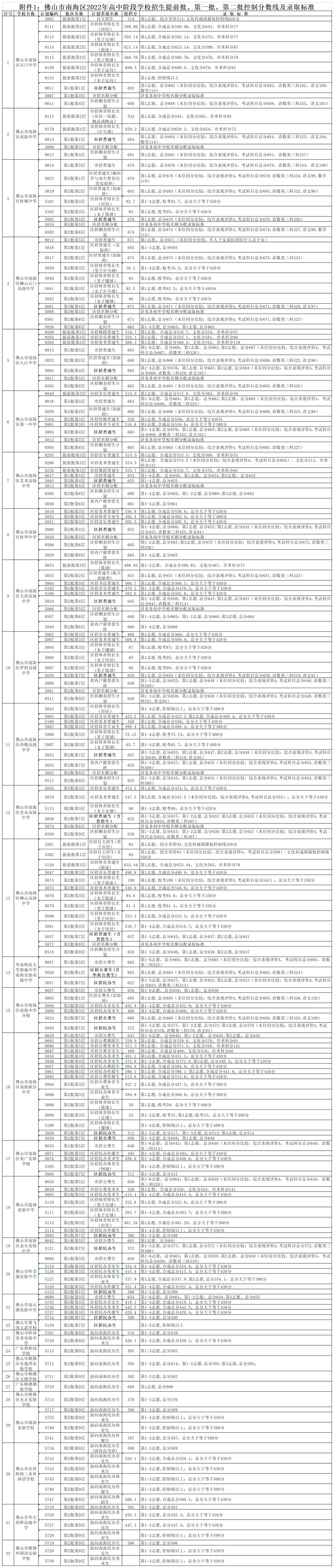 1.佛山市南海区2022年高中阶段学校招生提前批、第一批、第二批控制分数线及录取标准