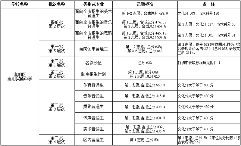 概述:高明区2022年高中阶段学校招生第二批以上最低录取分数线及录取标准如下:高明区第一中学名额分配到各初中学校录取标准......
