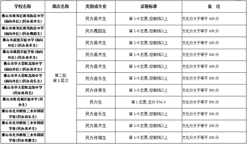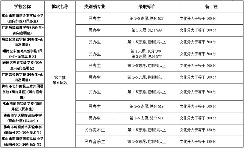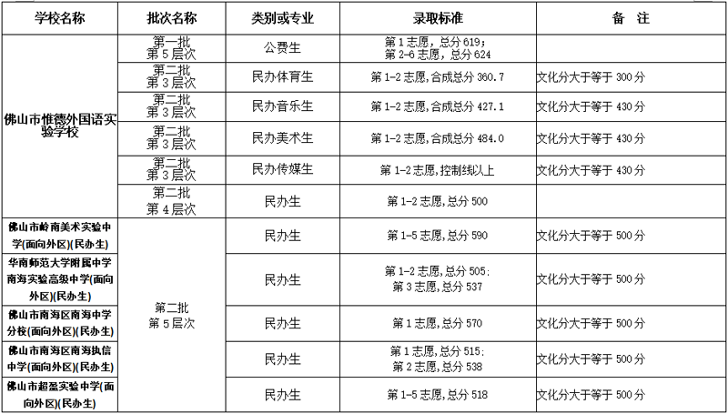 高明区2022年高中阶段学校招生第二批以上最低录取分数线及录取标准如下。