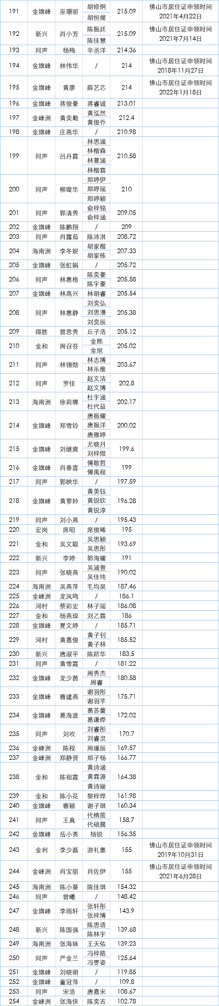 > 南海区桂城街道2022年第二季度新市民积分入户分数及名单公示中