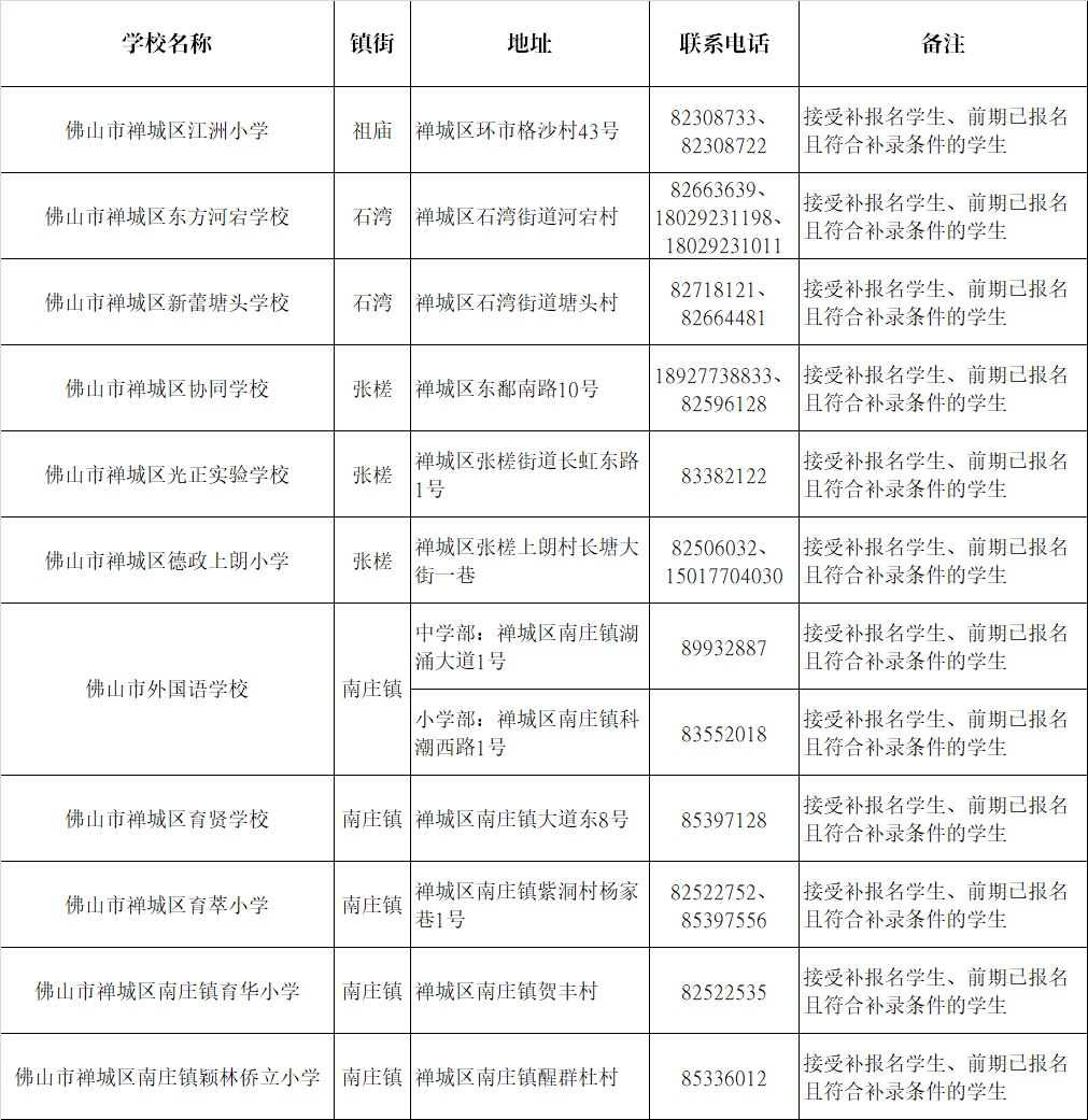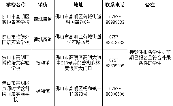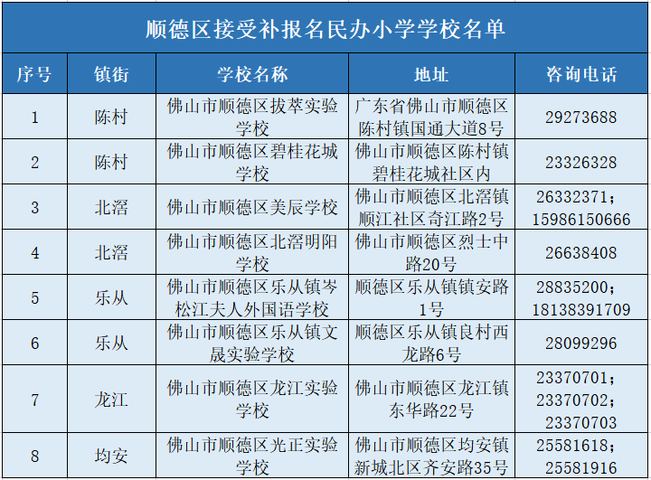 顺德区民办义务教育学校补报名工作指引