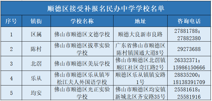 > 顺德区民办义务教育学校补报名工作指引