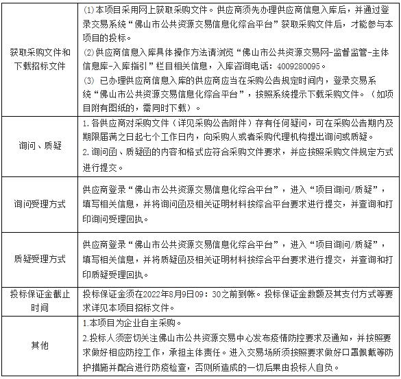(一)开标定于2022年8月1日上午10:30在佛山市高明区杨和镇公共资源交易所开标室正式开始。投标人请于2022年8月1日上午10:30前,到我交易所开标室现场并提交相关资料,迟到者作自动弃权处理。携带资料明细如下。
