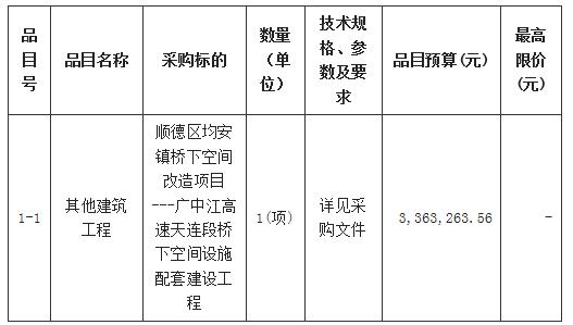 顺德区均安镇广中江高速天连段桥下空间设施配套建设工程竞争性磋商公告