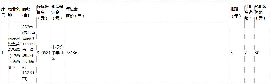 佛山禅城水乡新城物业管理有限公司属下1宗物业(详见租赁清单)采用举牌方式竞租,按照年租金单价价高者得原则确定竞得人。
