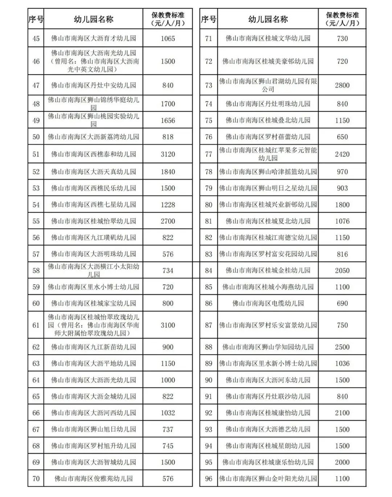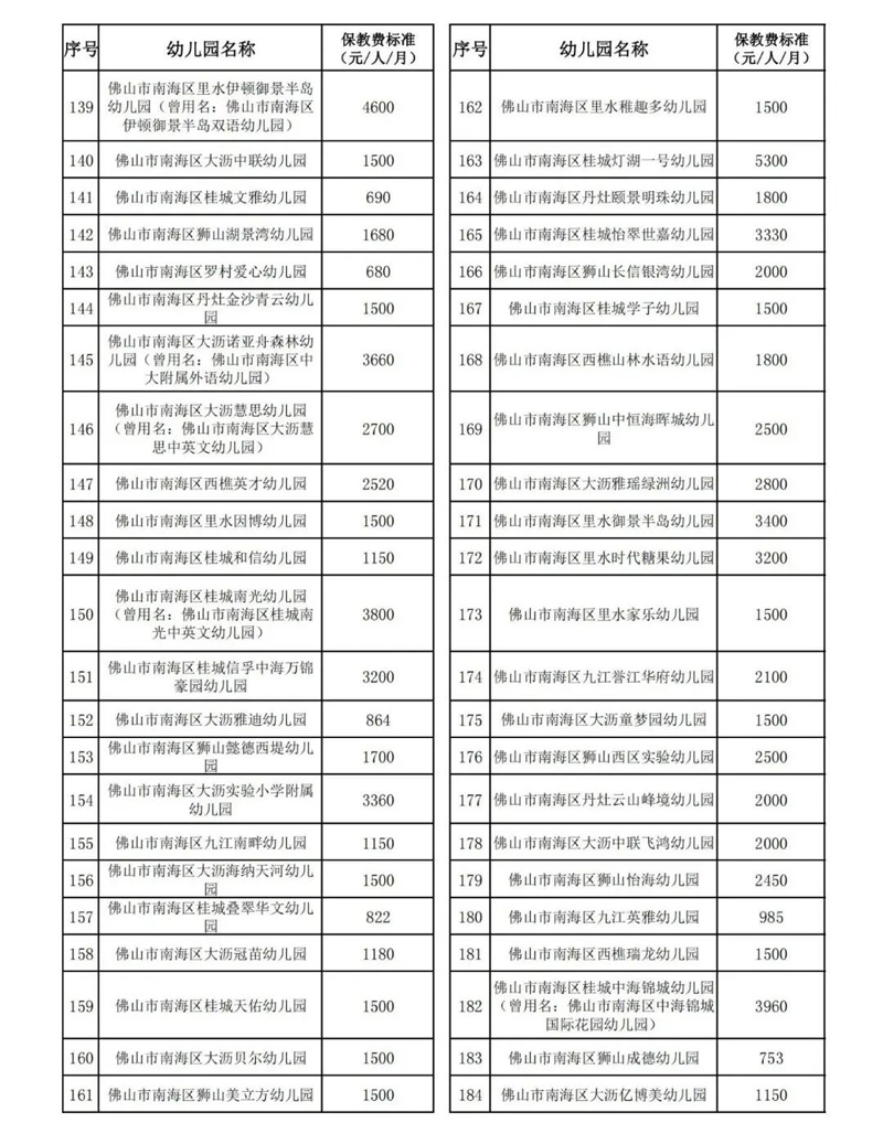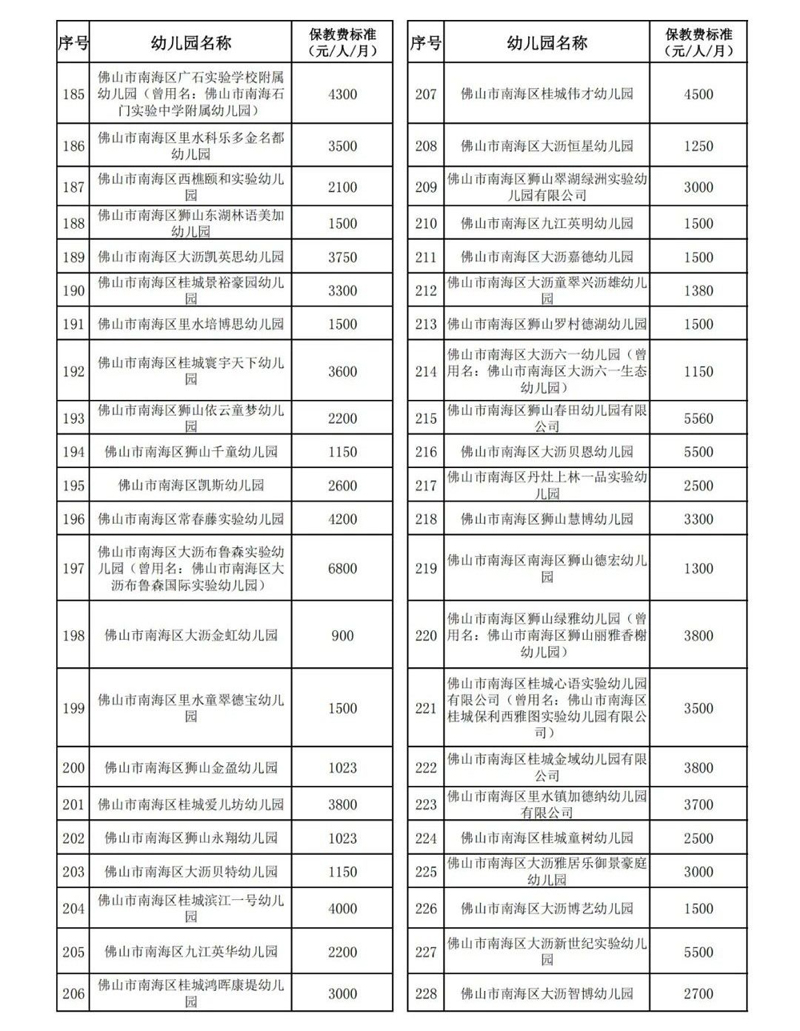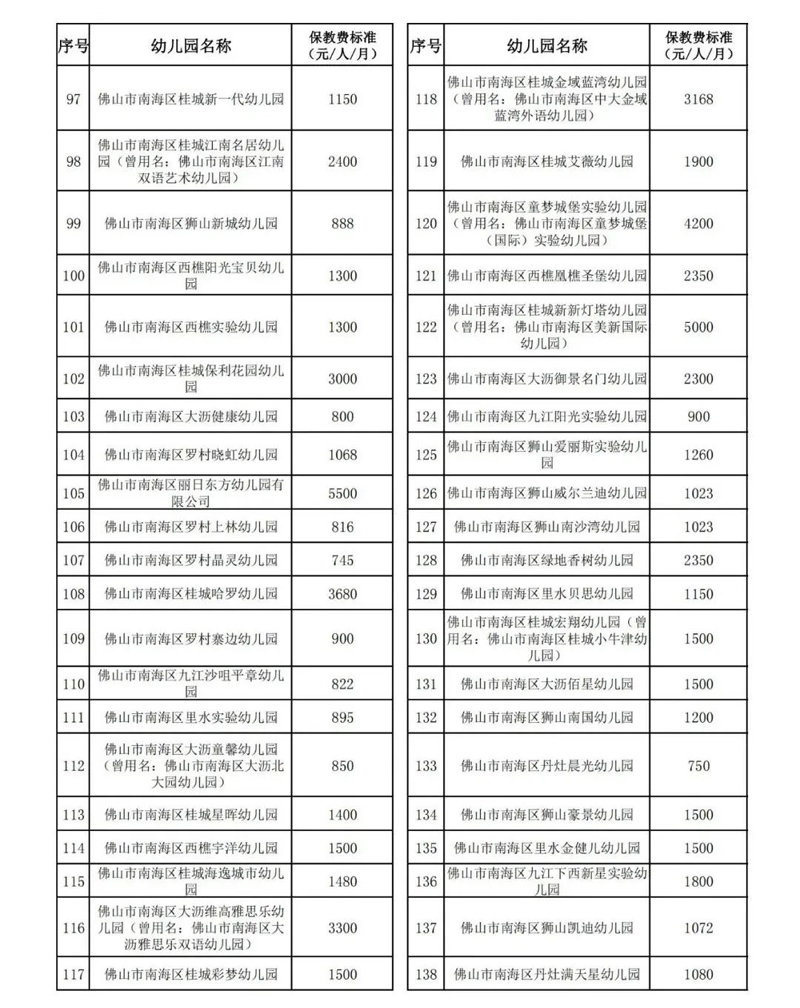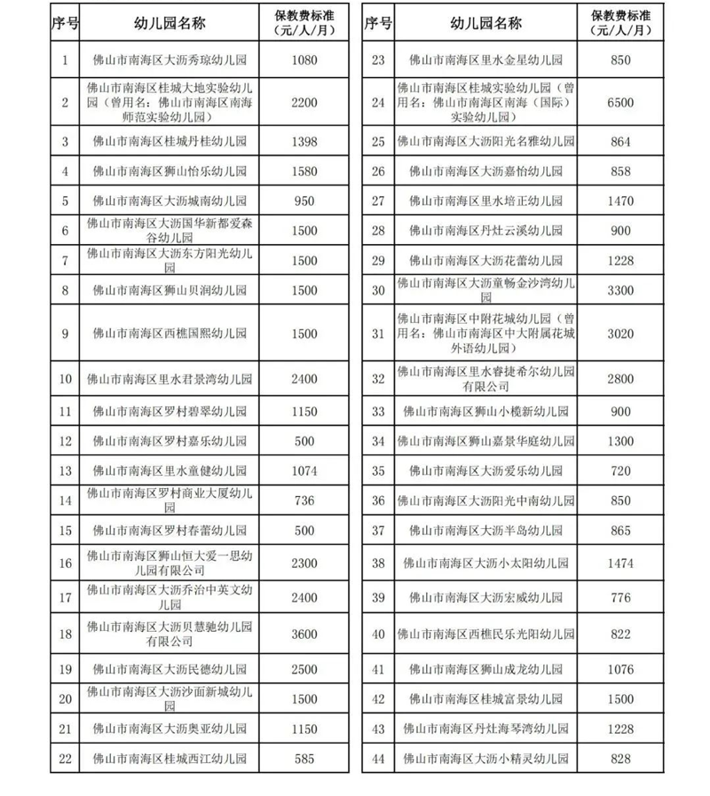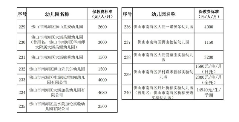 近日 ,南海区发展和改革局发布2022年《南海区民办幼儿园保教费信息采集汇总表》,文件中公布了南海区民办幼儿园的保教费信息。信息显示,今年统计的南海区民办幼儿园共240家,最低的幼儿园保教费收费标准为500元/人/月。详情如下: