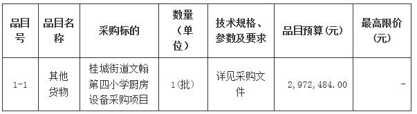 南海区桂城街道文翰第四小学厨房设备采购项目招标公告