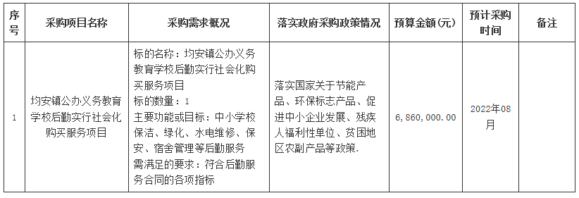 顺德区均安镇教育办公室2022年07月至2022年08月政府采购意向