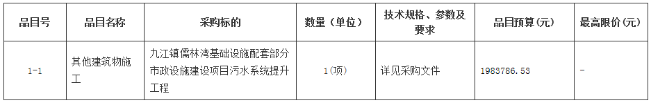 项目名称:九江镇儒林湾基础设施配套部分市政设施建设项目污水系统提升工程
