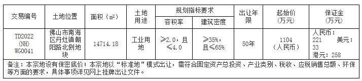 八、自本次公告起至网上挂牌截止期间,如有关于本宗地竞买文件的修改、澄清、说明等将通过网上交易系统以及佛山市南海区人民政府网发布,请有意参与竞买者密切留意。其它未尽事宜,详见本宗地的网上挂牌出让文件。
