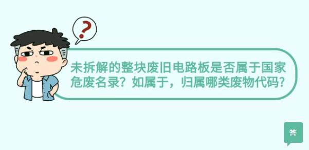 ?《国家危险废物名录》规定,废电路板(包括已拆除或未拆除元器件的废弃电路板),及废电路板拆解过程产生的废弃CPU、显卡、声卡、内存、含电解液的电容器、含金等贵金属的连接件属于危险废物,代码900-045-49。