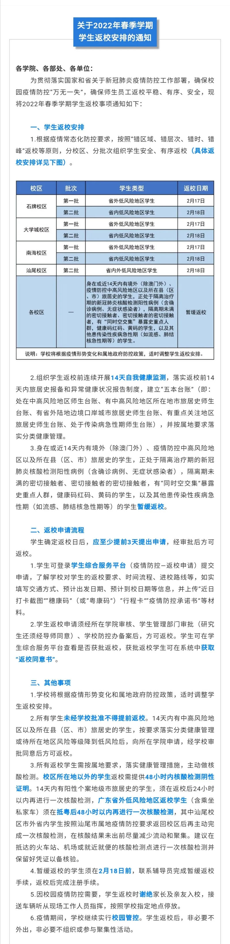 其他同学积极关注学校春季学期返校安排,并严格按照返校安排按时返校,未经批准不得提前返校。学生从广州市外返校的,须持48小时核酸检测阴性证明,并在入校时主动出示健康码、行程码和核酸证明。