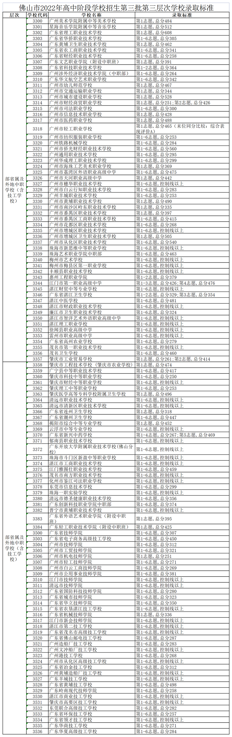 第三批面向全市招生的中高职教育贯通实验班、中高职衔接三二分段试点专业(含技工学校)的层次录取控制分数线473分。在此控制分数线以上未完成招生计划的学校,按考生志愿先后顺序从高分到低分录取的原则,以5分为一个分数段依次降分投档录取,降分最低控制线为300分;符合优先录取政策的考生末位同分比较时优先投档。