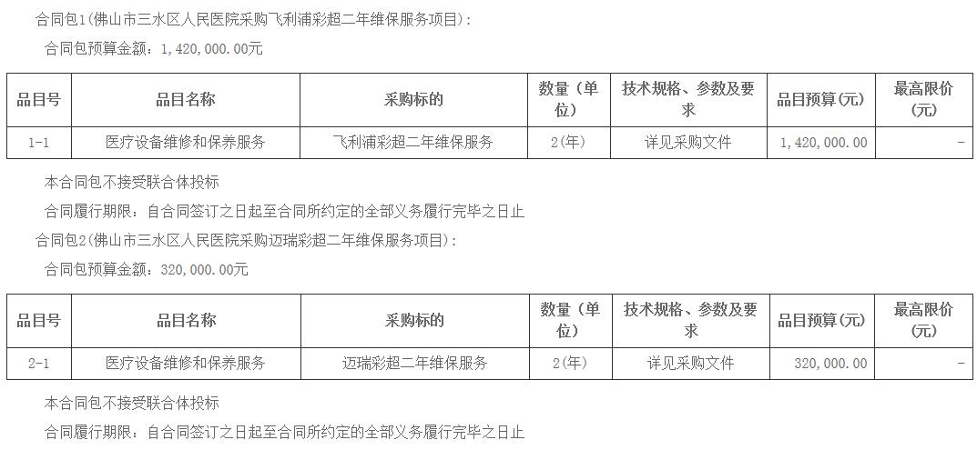 项目名称:佛山市三水区人民医院采购彩超维保服务项目