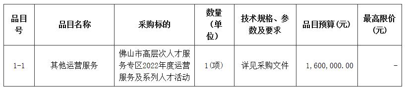 项目名称:佛山市高层次人才服务专区2022年度运营服务及系列人才活动
