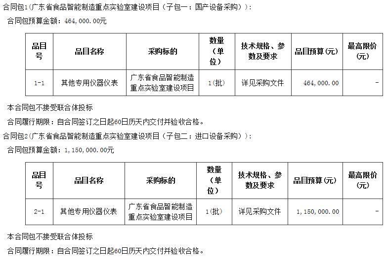合同包1(广东省食品智能制造重点实验室建设项目(子包一:国产设备采购))特定资格要求如下: