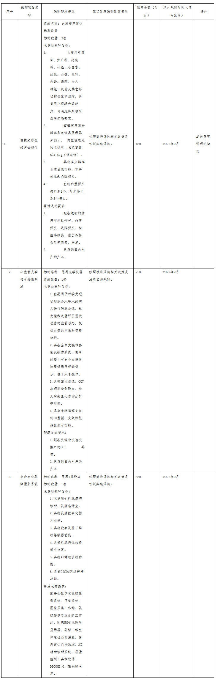 为便于供应商及时了解政府采购信息,根据《财政部关于开展政府采购意向公开工作的通知》(财库〔2020〕10号)等有关规定,现将佛山市中医院 2022年8(至)9月采购意向公开如下: