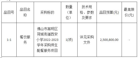 合同包1(佛山市高明区荷城街道西安小学2022-2023学年采购师生配餐服务项目):