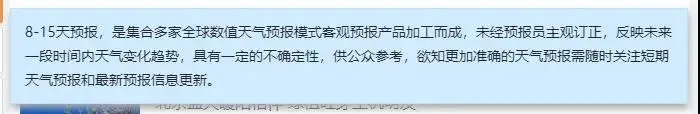 8-15天趋势预报属于中期预报,是集合多家全球数值天气预报模式客观预报产品加工而成,未经预报员主观订正,反映未来一段时间内天气变化趋势,具有一定的不确定性,仅供参考;
