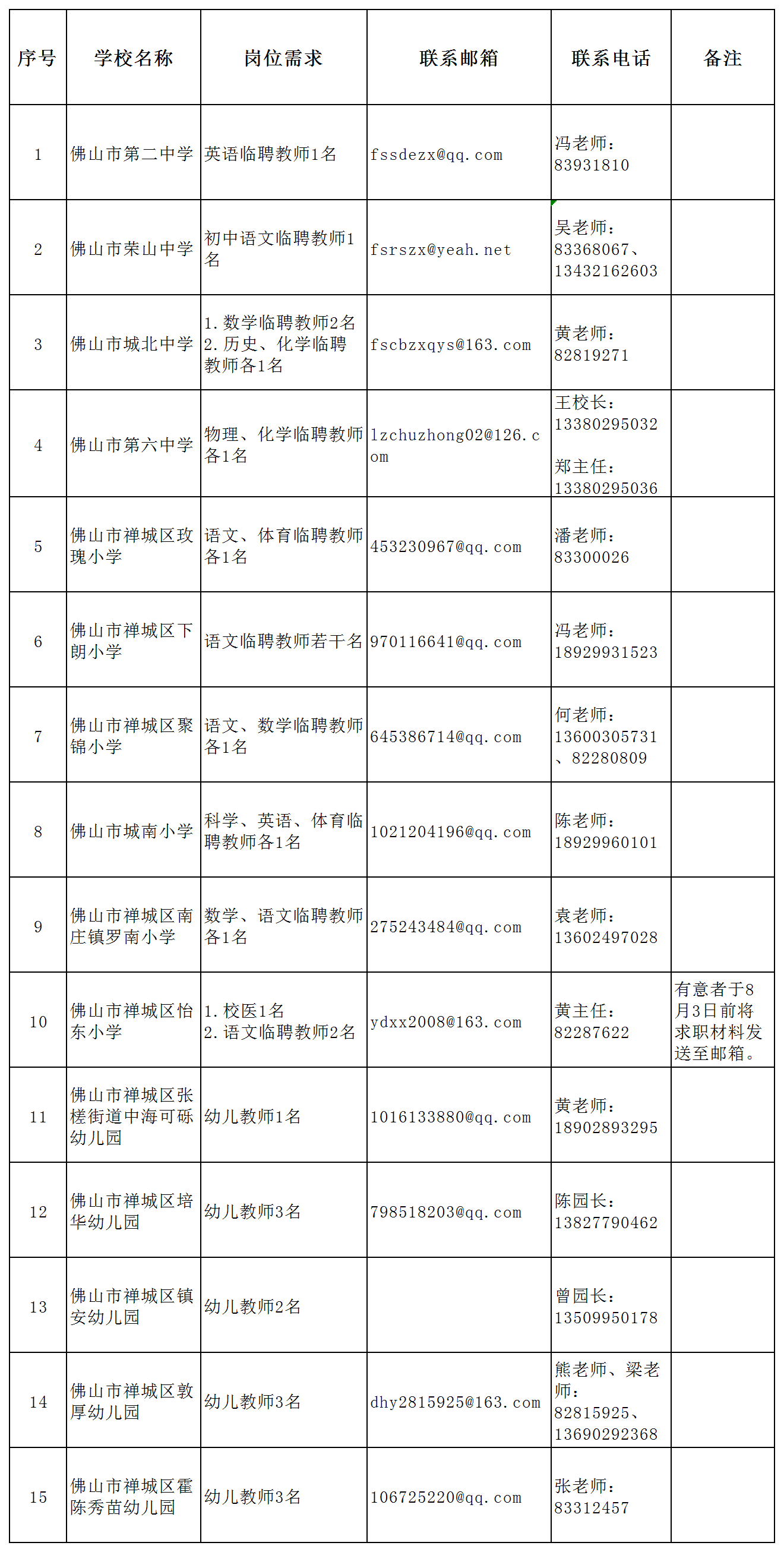 1.应聘公办学校临聘教师职位须具备禅城区教育局临聘教师入库人员资格;