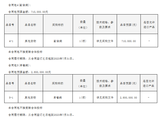 合同包5(早餐类)特定资格要求如下: