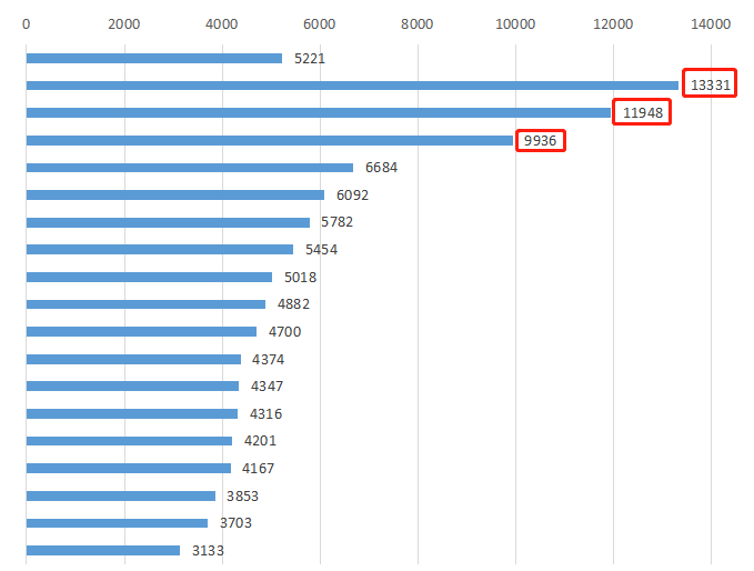从高位数来看,排名最高的三个职业由高到低依次是:水利水电建筑工程技术人员32994元/月,中医骨伤科医师32290元/月,信贷审核专业人员28738元/月。