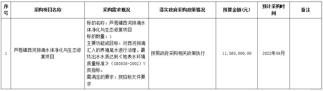 佛山市生态环境局三水分局芦苞监督管理所2022年07月至2022年09月政府采购意向