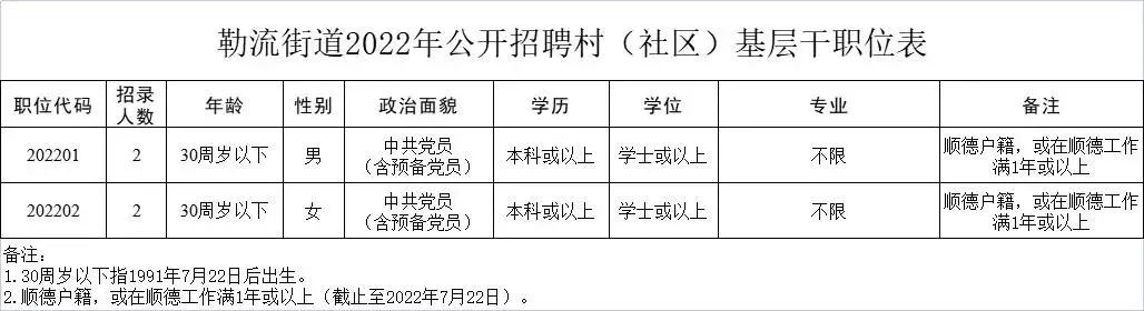 为进一步加强勒流街道基层党建工作及基层治理力量,现面向社会公开招聘一批村(社区)基层干部,有关事项公告如下: