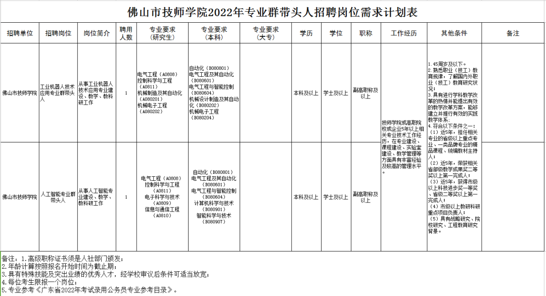 1、应聘者填写《佛山市技师学院2022年公开招聘专业群带头人报名表》(见附件2)