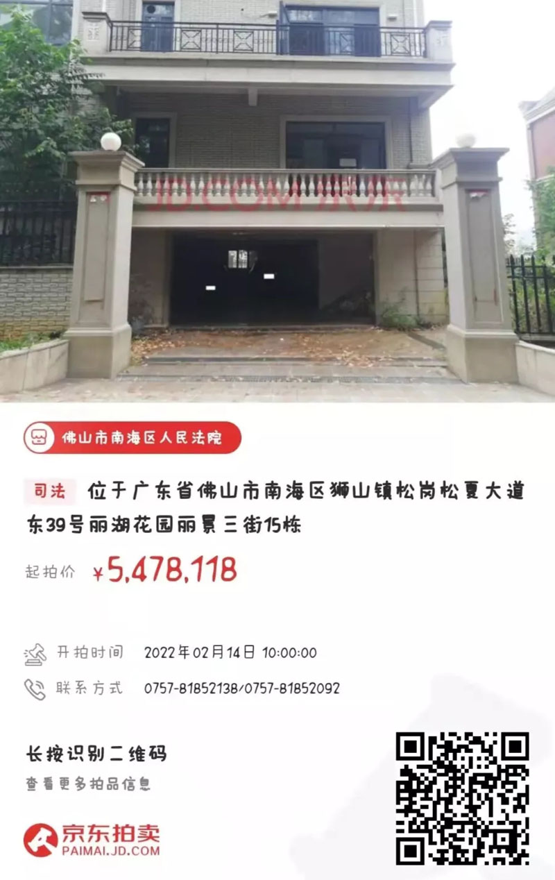 位于广东省佛山市南海区狮山镇松岗松夏大道东39号丽湖花园丽景三街15栋,房屋建筑面积679.33平方米,起拍价547.8118万元,评估价978.2352万元。