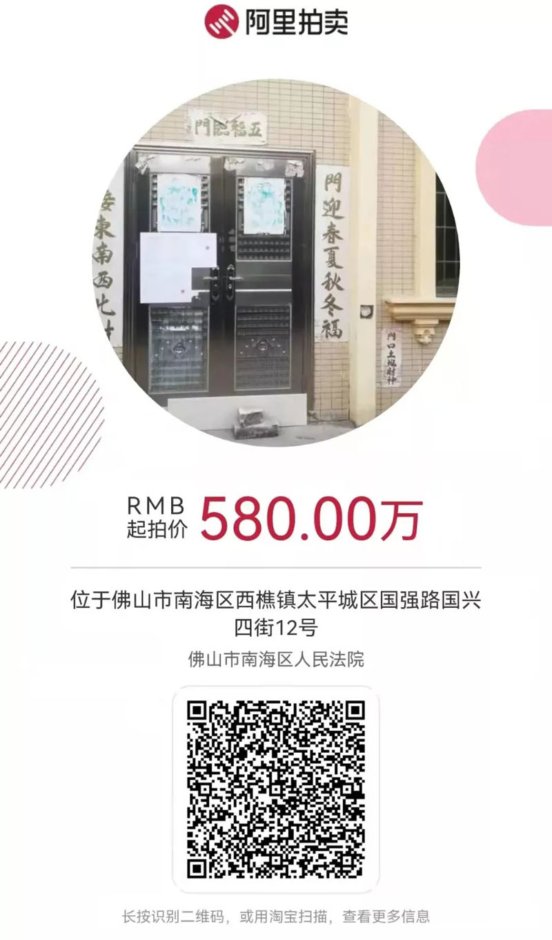 位于佛山市南海区西樵镇太平城区国强路国兴四街12号,房屋建筑面积1966.14平方米,起拍价580.00万元,评估价599.5069万元。
