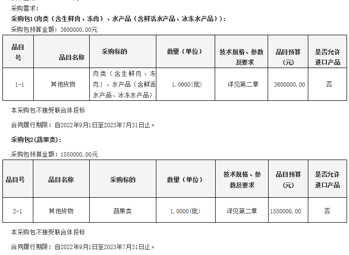 项目名称:佛山市高明区第一中学2022-2023学年饭堂食材采购项目
