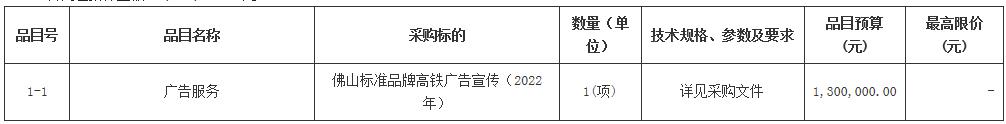 佛山标准品牌高铁广告宣传(2022年)(二次)竞争性磋商公告