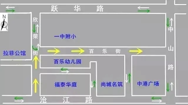 2.欣荣街(沧江路至百乐街路段)从南往北方向单行。