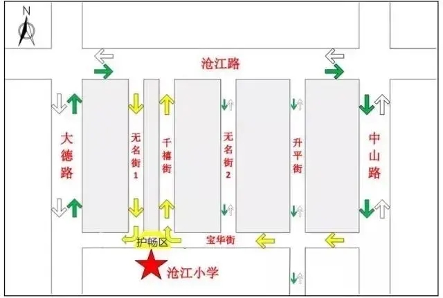 1.沧中附小门前设为护畅区禁止所有车辆进入。