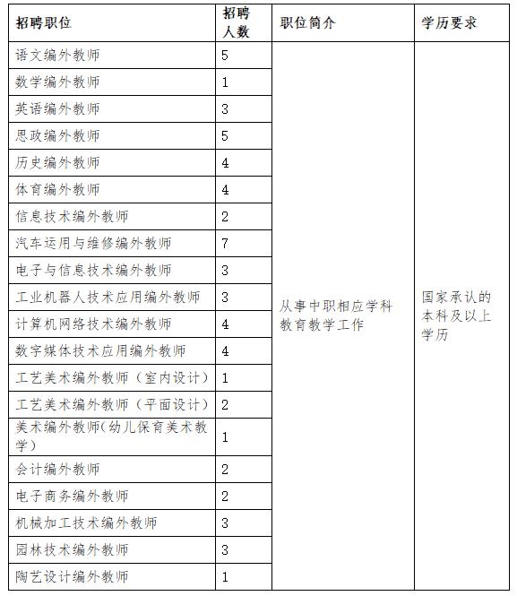 ⑤应聘各专业编外教师岗位的提供相关专业职业资格等级证书、职称证书;